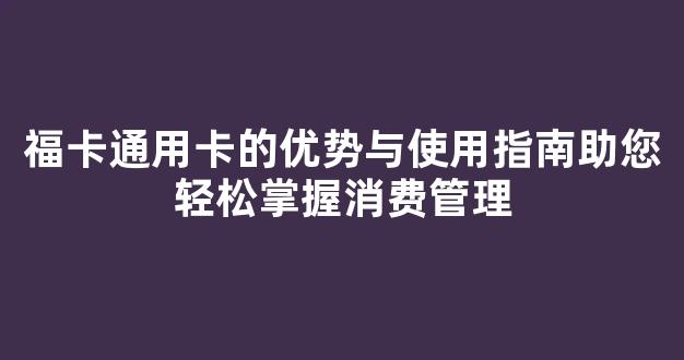 福卡通用卡的优势与使用指南助您轻松掌握消费管理