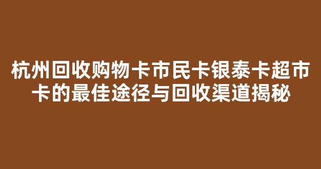杭州回收购物卡市民卡银泰卡超市卡的最佳途径与回收渠道揭秘