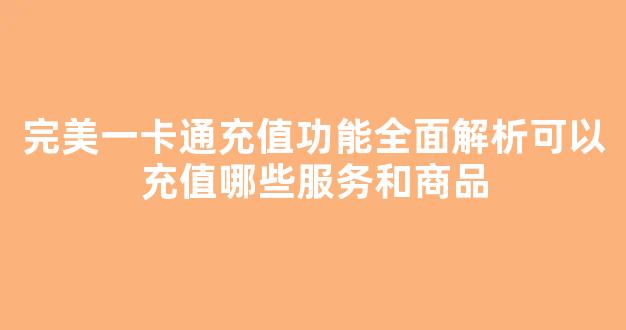 完美一卡通充值功能全面解析可以充值哪些服务和商品
