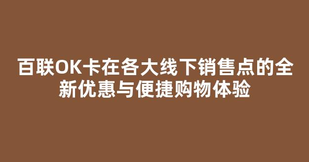 百联OK卡作为一种便捷的消费卡,近年来在各大线下销售点的推广力度越来越大。通过百联OK卡,消费者可以享受到多种优惠,获得更加便捷的购物体验。无论是购物折扣、积分返利,还是支付便利、会员专享活动,百联OK卡都在为消费者带来更高效、更实惠的消费方式。本文将详细介绍百联OK卡的优惠活动及其在各大线下销售点的购物优势。