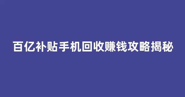 随着手机更新换代的速度加快,很多用户都会选择将旧手机回收。这不仅可以节省购买新手机的费用,还能赚取一些现金。而近年来,百亿补贴的手机回收计划成为了不少消费者关注的热点。本文将详细介绍如何通过手机回收赚钱,特别是在沃卡回收平台上的体验。通过本文,你可以了解手机回收的流程、注意事项以及如何通过这种方式轻松赚取一些额外收入。