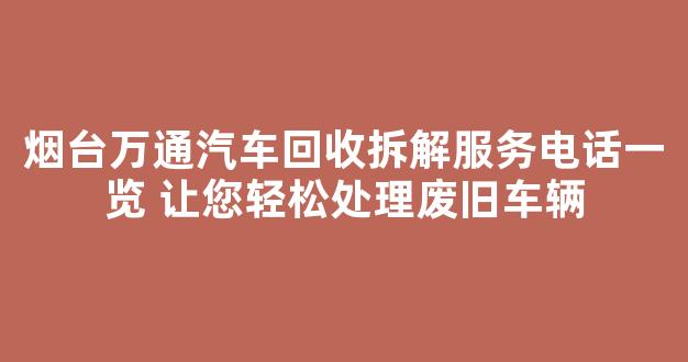 在日常生活中,随着汽车的使用年限逐渐增加,废旧车辆的回收处理显得尤为重要。废旧车辆不仅占据了大量的资源,还可能对环境产生负面影响。因此,选择专业的汽车回收拆解服务,能够有效减少资源浪费并确保废旧车辆得到妥善处理。烟台万通汽车回收拆解服务电话一览将帮助您轻松处理废旧车辆,享受便捷、安全、专业的回收体验。