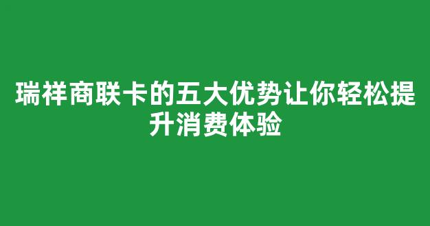 在现代消费环境中,如何提高购物体验和享受更多优惠已成为众多消费者的需求。瑞祥商联卡作为一款优质的消费卡片,凭借其五大独特优势,让每一位用户的消费体验更上一层楼。无论是通过优惠的积分政策,还是专享的商户折扣,瑞祥商联卡都能帮助用户在日常生活中轻松节省开支。本文将详细介绍瑞祥商联卡的五大优势,帮助大家更好地了解并利用这款卡片,提升自己的消费体验。