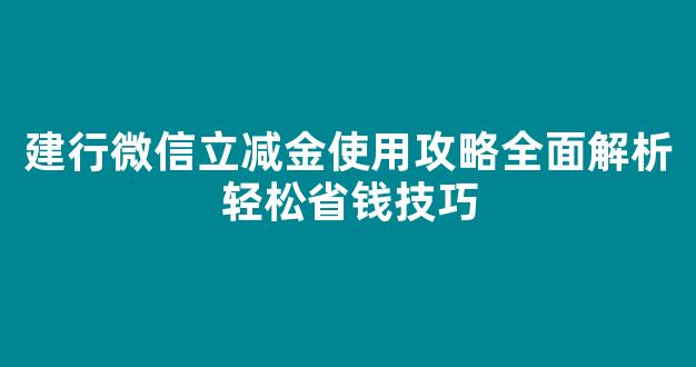 在现代生活中,大家都希望能找到一些省钱的小技巧,而建行微信立减金正是其中一种非常实用的方式。通过这项服务,你可以在消费时享受到折扣,从而达到省钱的目的。本文将详细介绍如何使用建行微信立减金,包括使用方法、适用场景和省钱技巧。无论是日常购物还是线上支付,都能帮助你轻松省下一笔开销。