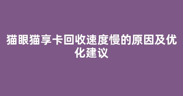 猫眼猫享卡是许多电影爱好者购买电影票时使用的一种优惠卡,凭借其一定的积分和折扣,许多用户乐于使用。但最近有不少用户反映,猫眼猫享卡的回收速度慢,导致他们在急需时无法及时回收卡片,从而影响了使用体验。本文将深入探讨猫眼猫享卡回收速度慢的原因,并提供优化建议,帮助用户获得更好的回收体验。