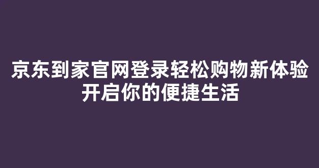 京东到家官网登录轻松购物新体验开启你的便捷生活