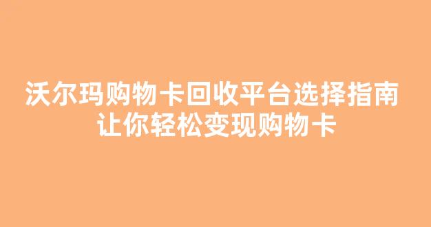 沃尔玛购物卡回收平台选择指南 让你轻松变现购物卡