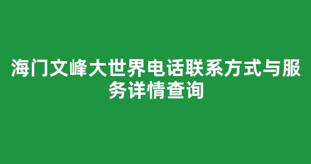 海门文峰大世界是一个集合了购物、娱乐、餐饮、住宿等多种功能的大型商业综合体。无论是日常购物,还是家庭聚会、朋友聚会,这里都能满足各类需求。本文将为大家提供海门文峰大世界的电话联系方式、服务详情,以及如何方便快捷地利用这些服务来享受一站式的购物和娱乐体验。