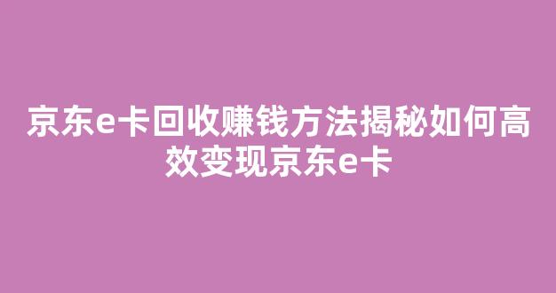 京东e卡作为一种流行的购物卡,很多人在购买商品时会选择使用它。随着京东e卡的普及,越来越多的人开始关注如何高效地将手中的e卡变现,从而获得现金回报。本文将为大家揭秘京东e卡回收的赚钱方法,介绍如何通过简单的步骤,将京东e卡转化为实际的金钱。