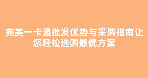 完美一卡通批发优势与采购指南让您轻松选购最优方案