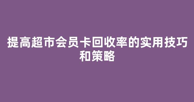在现代零售行业中,超市会员卡已经成为了商家与顾客之间建立长期关系的重要工具。许多超市通过会员卡提供专属优惠和积分奖励,吸引顾客频繁光顾。然而,如何提高超市会员卡的回收率,却是商家面临的一个不小的挑战。回收率的提高不仅有助于提高顾客忠诚度,还能增加超市的收益。本文将介绍几种实用的技巧和策略,帮助超市商家提升会员卡的回收率。