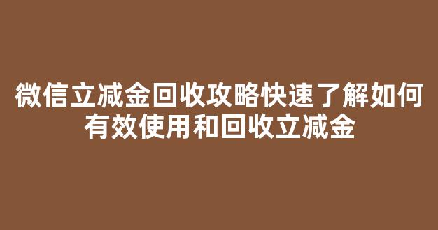 微信立减金回收攻略:快速了解如何有效使用和回收立减金