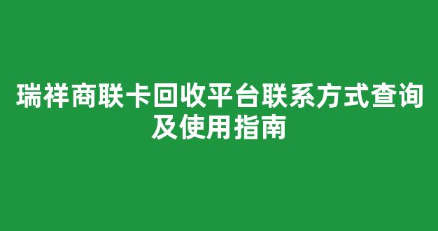 瑞祥商联卡回收平台联系方式查询及使用指南