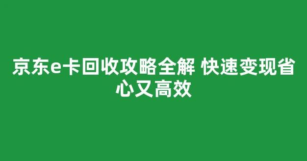 京东e卡是京东推出的一种充值卡,可以在京东商城内购买商品、支付费用。由于其使用便捷,京东e卡的购买和使用变得越来越普及。但是,许多用户在购买e卡后可能因为各种原因需要将其变现,回收京东e卡成为他们的需求之一。本文将介绍如何快速回收京东e卡,帮助你高效变现,避免不必要的麻烦。以下是关于京东e卡回收的详细攻略,希望能为你提供帮助。