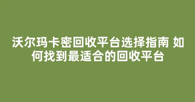 沃尔玛卡密回收平台选择指南:如何找到最适合的回收平台