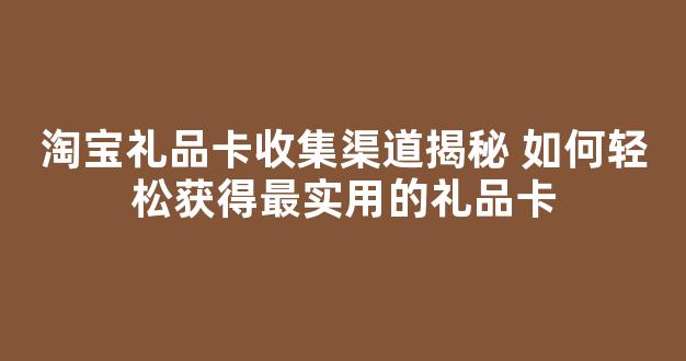 随着电商平台的蓬勃发展,礼品卡已经成为许多人购物时的一种便捷支付方式。尤其是淘宝礼品卡,它不仅可以在淘宝平台上购物,还可以用来兑换各种优惠和奖励。因此,了解如何轻松获得淘宝礼品卡,对于很多人来说都是一个值得关注的话题。本文将为大家详细介绍淘宝礼品卡的收集渠道,帮助大家在最短的时间内获取到最实用的礼品卡。