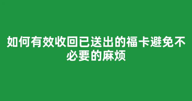 在现代社会,福卡作为一种广受欢迎的祝福和礼物,已经成为许多人日常生活的一部分。无论是朋友之间的赠送,还是在节假日等特殊场合中,福卡都扮演着重要的角色。然而,由于一些特殊情况,可能需要收回已送出的福卡。如何做到这一点,又不引发不必要的麻烦,是许多人关心的问题。在本文中,我们将探讨如何有效收回已送出的福卡,避免不必要的麻烦,并给出一些实用的建议。
