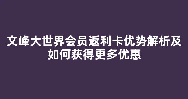 文峰大世界会员返利卡优势解析及如何获得更多优惠