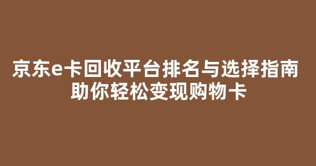 京东e卡作为京东平台的一种购物卡,可以在购物时使用,也可以通过回收平台将其变现。然而,面对市面上众多的回收平台,许多人可能会感到困惑,不知道该如何选择。本文将详细介绍京东e卡回收平台的排名、选择技巧以及如何通过合适的平台轻松变现购物卡,帮助大家选择最适合自己的平台。