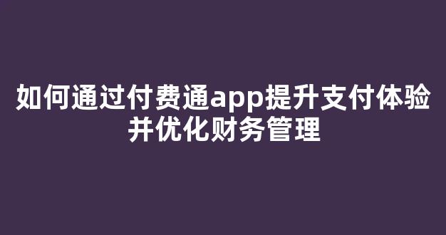 随着科技的不断发展,支付方式已经逐渐走向数字化,支付通App成为越来越多用户首选的支付工具。它不仅提供了便捷的支付功能,还能帮助用户优化财务管理,让个人和家庭的财务状况更加清晰和高效。通过使用付费通App,用户可以轻松管理自己的账单、支出,并享受到更加流畅的支付体验。本文将详细探讨如何通过付费通App提升支付体验并优化财务管理。