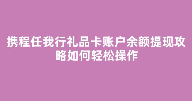 携程任我行礼品卡已经成为很多消费者选择的支付工具之一,尤其是喜欢旅游的朋友们。无论是通过赠送还是自己购买,携程礼品卡都能带来便利。然而,很多人对于如何提现这些礼品卡的账户余额并不清楚。本文将详细介绍如何轻松操作携程任我行礼品卡的余额提现过程,帮助您更好地管理自己的账户余额。