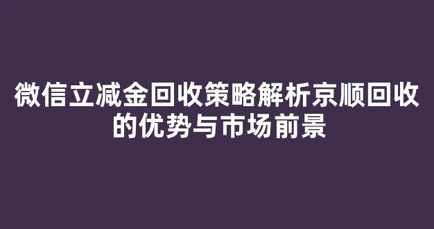 京顺回收是目前市场上比较知名的回收平台之一,它致力于提供微信立减金回收服务。随着微信支付的普及,越来越多的人开始关注如何回收和利用微信立减金,京顺回收正是凭借其高效的回收策略和服务,吸引了大量用户的关注。本文将解析微信立减金回收的策略,并介绍京顺回收的优势与市场前景。