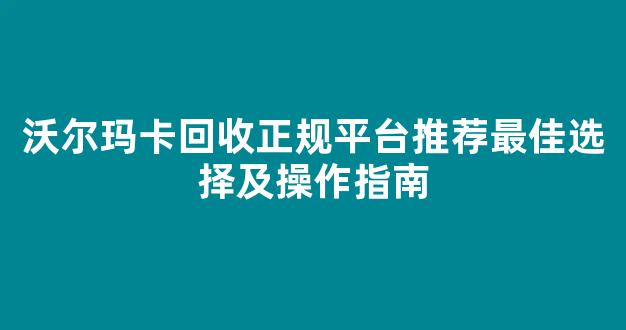 沃尔玛卡回收正规平台推荐最佳选择及操作指南