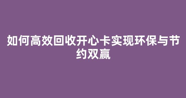 随着环保意识的不断提升,越来越多的人开始关注资源的回收和再利用。开心卡作为一种常见的消费卡片,如果不加以回收,将会给环境带来一定的负担。而高效回收开心卡不仅能为环保事业贡献力量,还能节约资源,帮助用户获得更多的经济回报。本文将详细介绍如何通过高效回收开心卡来实现环保与节约双赢,探讨回收的意义、方法以及如何选择合适的回收平台。