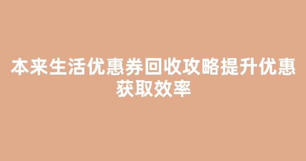 通过这些简单的技巧,消费者可以更高效地回收本来生活的优惠券,获得更大的实惠。