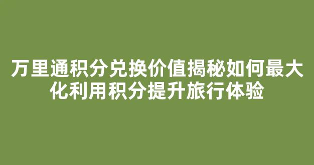 万里通积分兑换价值揭秘:如何最大化利用积分提升旅行体验