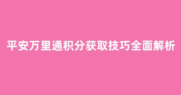 平安万里通是一种广受欢迎的积分奖励计划,旨在为平安用户提供更多福利和便利。通过参与平安万里通积分计划,用户不仅能够享受到不同的优惠,还能通过积累积分来换取多种礼品、航空里程或其他实用的服务。本文将全面介绍如何通过各种方式获取平安万里通积分,并提供一些实用的技巧帮助你更高效地积累积分。