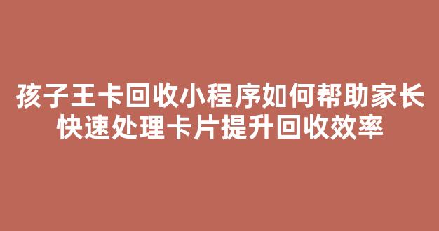 在当今互联网时代,许多家长面临着卡片回收的困扰。特别是对于那些不熟悉操作的家长来说,处理卡片往往需要花费很多时间和精力。而“孩子王卡回收小程序”应运而生,致力于帮助家长更加高效、便捷地处理卡片。该小程序不仅让回收过程更加顺畅,还能有效提升回收效率,节省家长们宝贵的时间。本文将详细介绍孩子王卡回收小程序如何帮助家长快速处理卡片,提升回收效率。