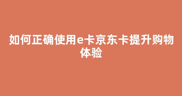 如何正确使用e卡京东卡提升购物体验