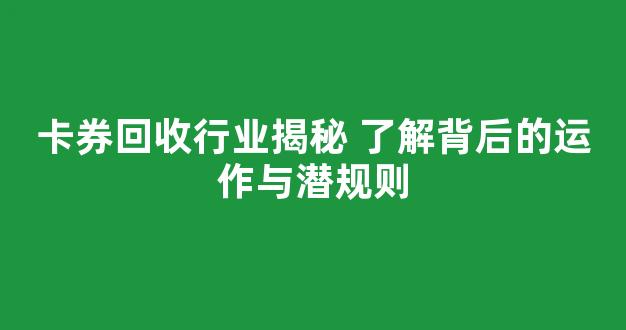 随着电商和线上购物的盛行,各种形式的卡券成为了大家日常消费的一部分。尤其是在一些促销活动中,商家发放的购物卡券、优惠券等成为消费者的抢手商品。然而,卡券的回收市场逐渐兴起,吸引了很多玩家和商家参与其中,带动了整个行业的快速发展。那么,卡券回收行业到底是如何运作的呢?有哪些潜规则隐藏在背后?今天,我们就来详细分析一下这个行业的背后运作,揭开它的神秘面纱。