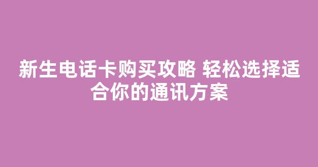 新生电话卡购买攻略 轻松选择适合你的通讯方案