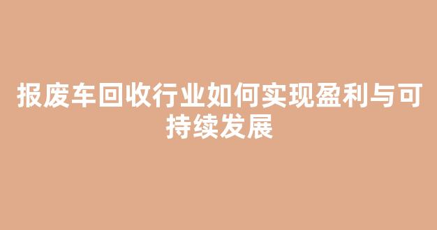 报废车回收行业如何实现盈利与可持续发展