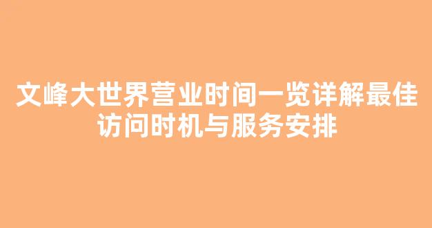 文峰大世界营业时间一览详解最佳访问时机与服务安排