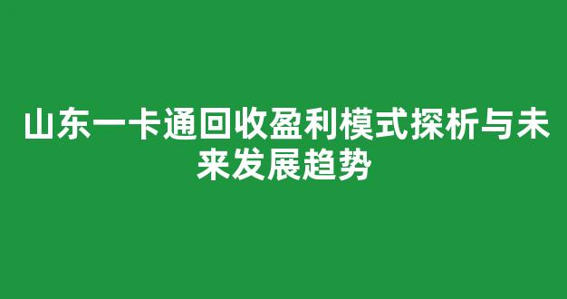 山东一卡通回收盈利模式探析与未来发展趋势
