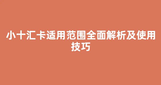 小十汇卡是一种在金融领域广泛使用的支付工具,它具有便捷、安全、快速的特点,适用于多种消费场景。随着电子支付的普及,小十汇卡在日常生活中扮演着越来越重要的角色。本文将详细解析小十汇卡的适用范围及使用技巧,帮助用户更好地了解如何高效使用这项支付工具。