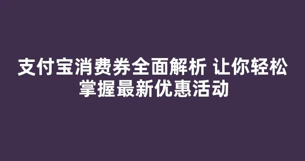 支付宝消费券全面解析 让你轻松掌握最新优惠活动