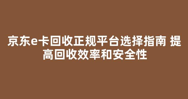 京东e卡回收正规平台选择指南 提高回收效率和安全性