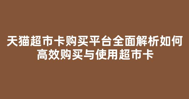 天猫超市卡是很多人日常购物的好帮手,能在天猫超市中购买各种生活用品和食品。很多人想知道如何高效购买和使用超市卡,避免浪费时间和资金。本文将从购买渠道、选择面额、使用方法、注意事项以及回收体验等方面,详细讲解如何让天猫超市卡发挥最大价值。和每一步操作都有技巧和经验,掌握之后可以让购物变得轻松和省钱。