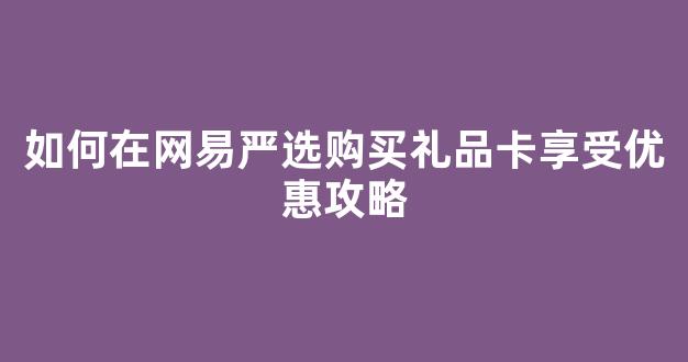 在如今购物日渐便捷的时代,购买礼品卡成为了不少消费者获得优惠的好方式。网易严选作为一个知名的电商平台,也推出了丰富的礼品卡选项,用户通过购买这些礼品卡,不仅可以轻松享受购物的便利,还能享受一些优惠。本文将为大家详细介绍如何在网易严选购买礼品卡以及如何享受相关优惠,让你在购物时更加省钱。