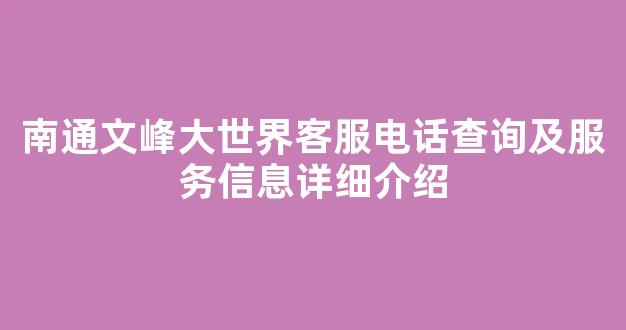 南通文峰大世界客服电话查询及服务信息详细介绍