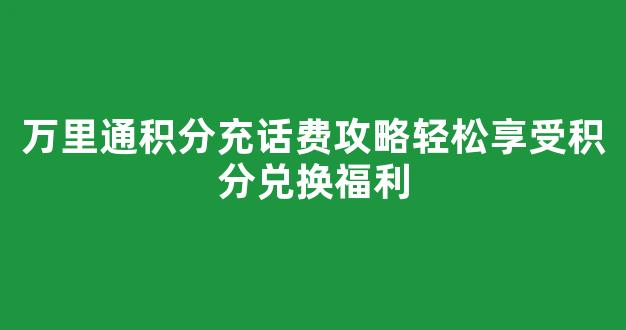 随着移动支付和线上购物的普及,越来越多的人开始使用积分来兑换福利,其中万里通积分充话费便成为了许多用户的选择。本文将为大家详细介绍如何利用万里通积分来轻松兑换话费福利,帮助大家在生活中享受到更多的便捷和实惠。