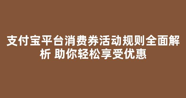 支付宝平台消费券活动规则全面解析 助你轻松享受优惠