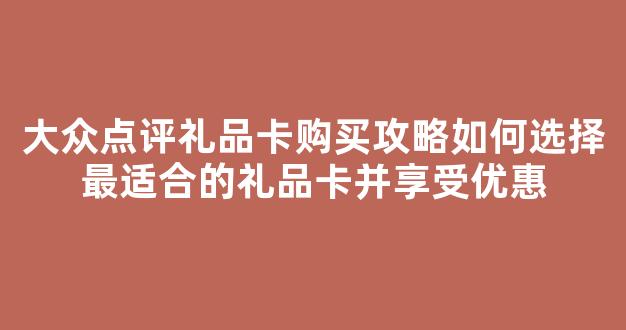 大众点评礼品卡购买攻略如何选择最适合的礼品卡并享受优惠