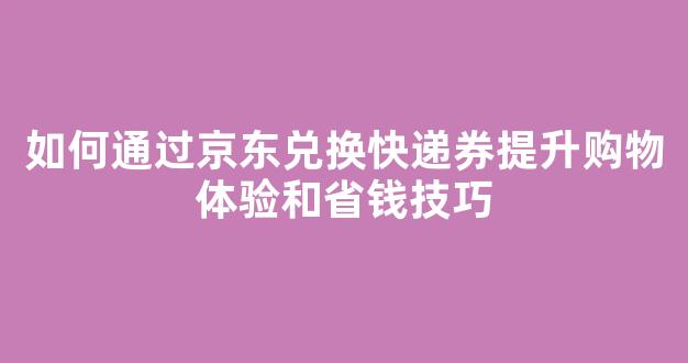 在如今的电商时代,购物变得越来越方便,京东作为国内领先的电商平台,提供了许多省钱和提升购物体验的技巧。通过兑换快递券,消费者可以在购物时享受更实惠的快递费用,降低整体购物成本。本文将详细介绍如何通过京东兑换快递券来提升你的购物体验,并分享一些省钱技巧,让你在购物时更加明智和省钱。