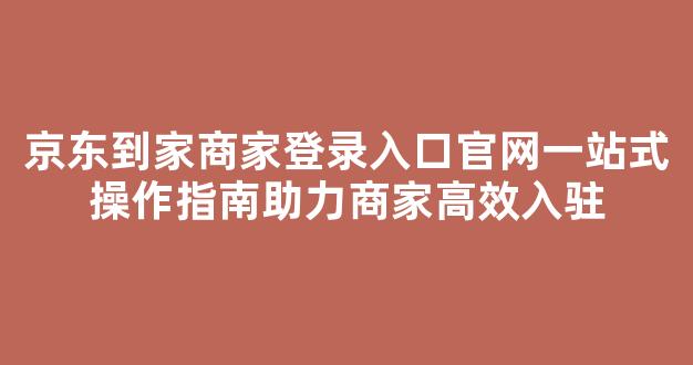 京东到家商家登录入口官网一站式操作指南助力商家高效入驻