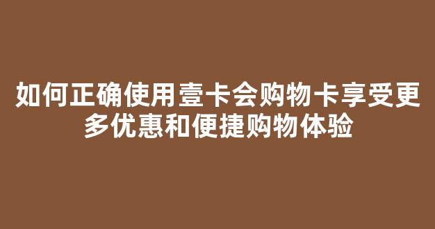 如何正确使用壹卡会购物卡享受更多优惠和便捷购物体验